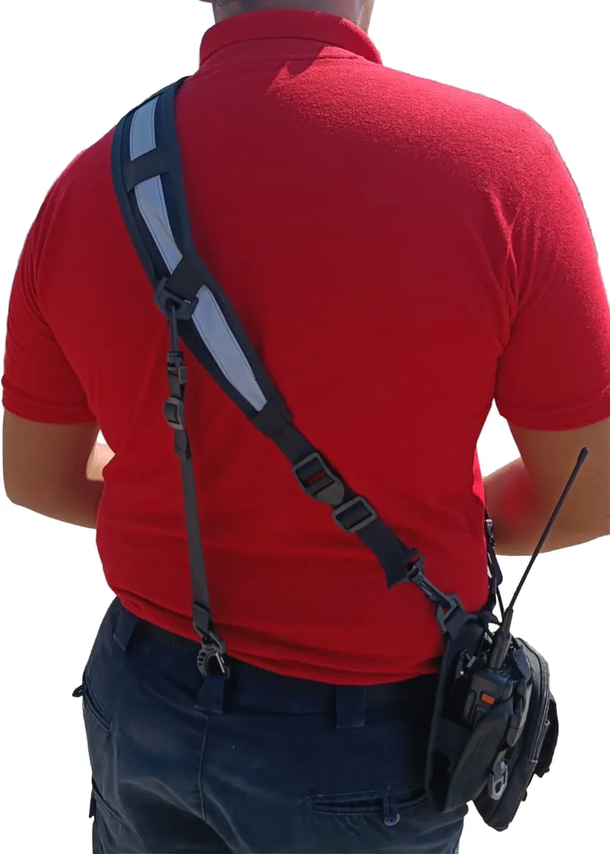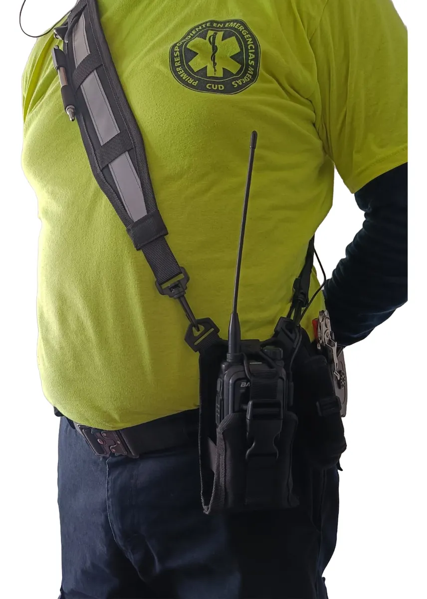Bandola porta radio ideal para Bombero, paramédico o personal de respuesta a emergencias y vigilancia. Frescura y comodidad gracias a sus materiales que permiten transpiración. Ideal para Radios de 11 a 15 cm de altura.